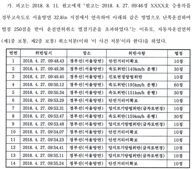 "왜 처음 난폭운전했을 때 바로 잡지않고 내가 여러번 할 때까지 방임한 다음 벌점 초과로 면허를 취소 시켰냐" 며 소송 걸었는데