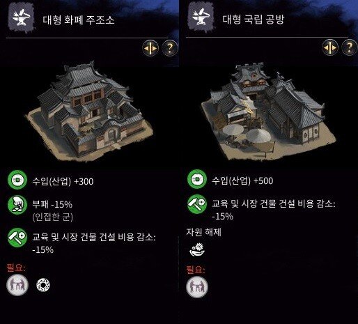2. 인접한 군 부패 -15퍼 때문에 모든지역에 지어도 됨. 특히 관청에 부패 수치없는 팩션(원소, 원술, 정강)은 무조건 짓자