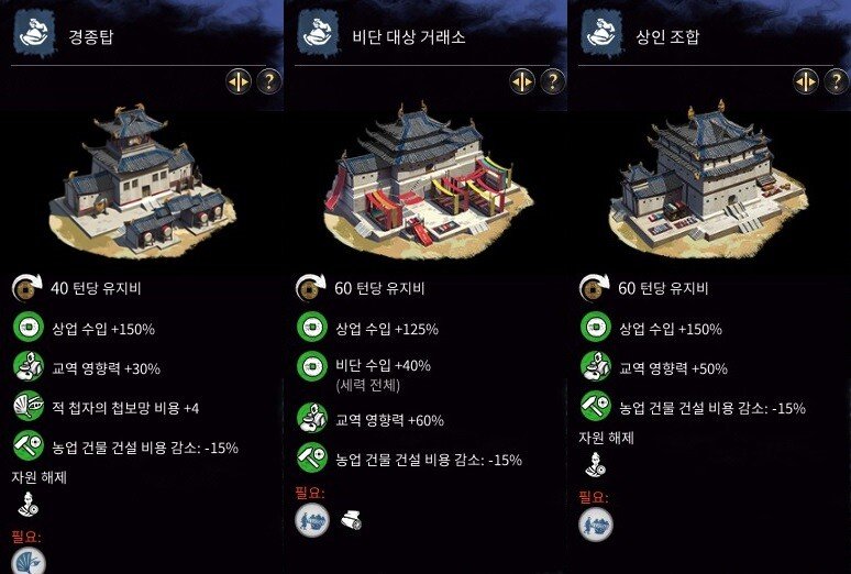 비단 지역이 세개 이상이 있다면 농업 특화지역에 건설해도 괸찬을 정도로 강력한 건물.