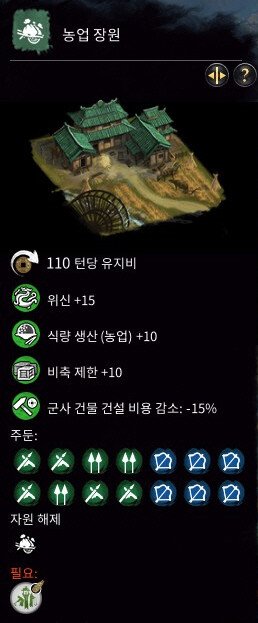 농업 수익 극대화 특화 군 => 팩션에 따라서 8~10단계 도시까지 업그레이드를 하면 된다.
