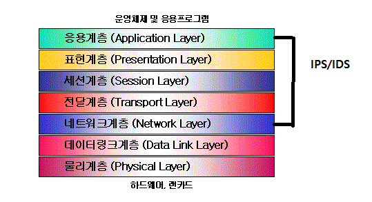 일단 방화벽과 IPS/IDS의 차이는 방화벽은 OSI 7 계층에서 차이가 난다.