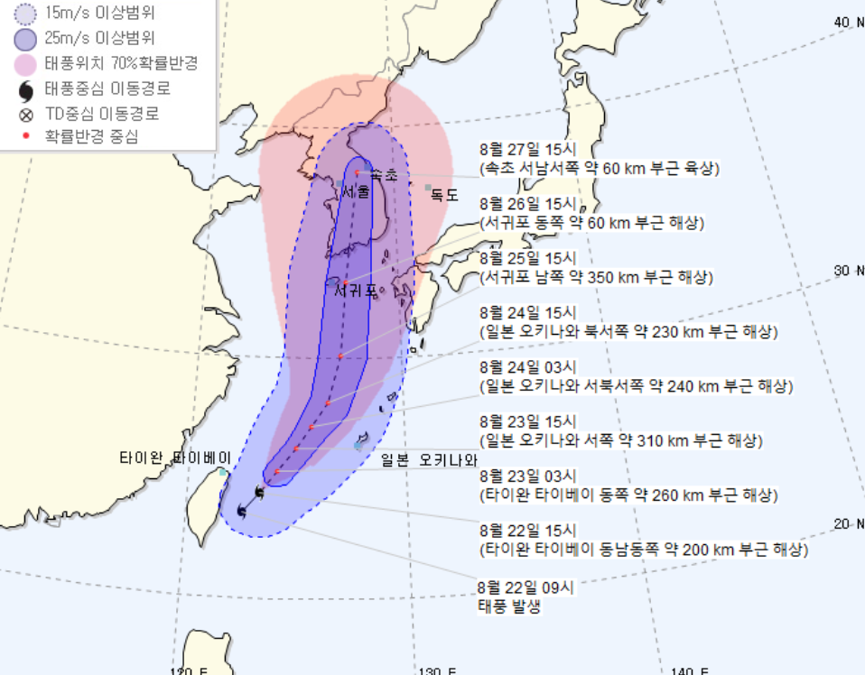 올여름 장마에 이어 태풍까지... 8월 26일 밤 제8호 태풍 '바비'가 남해안 상륙 가능성 예상된다.