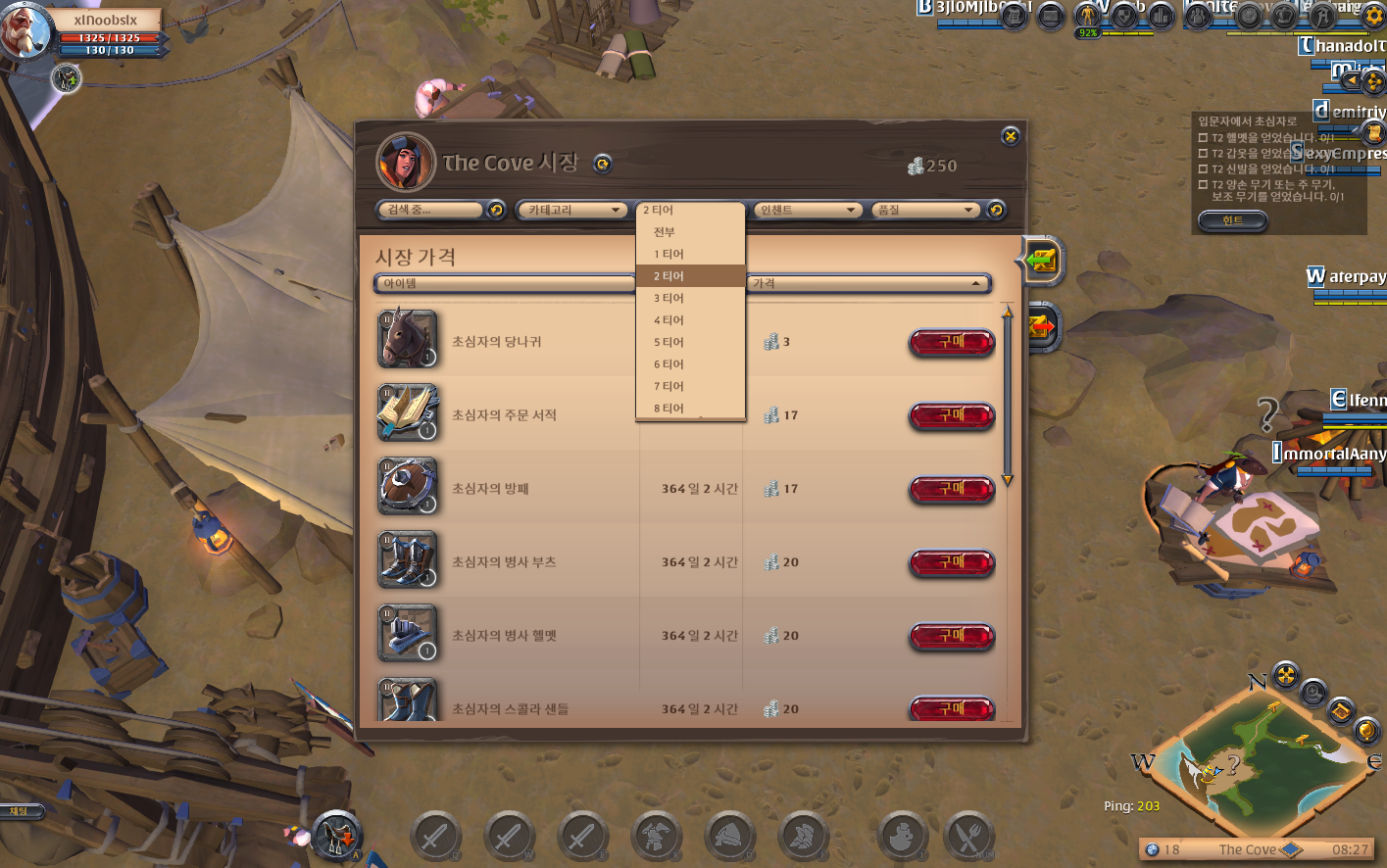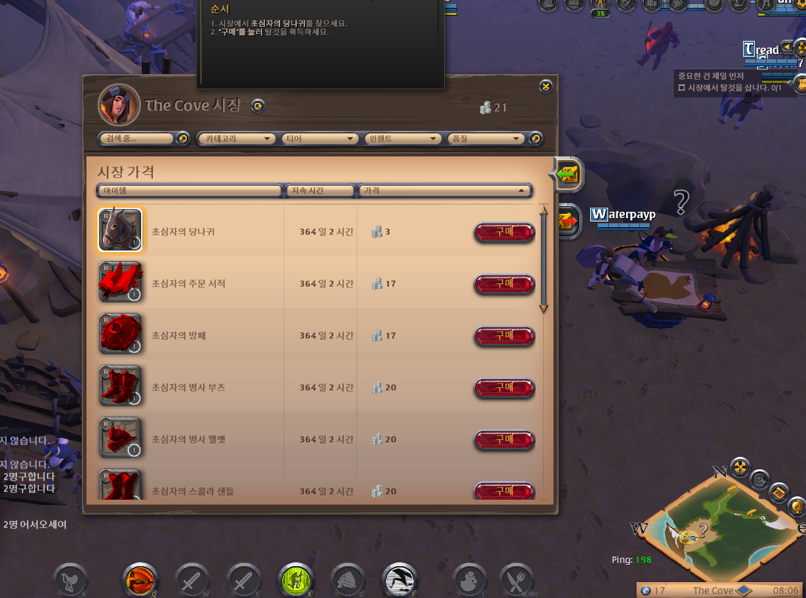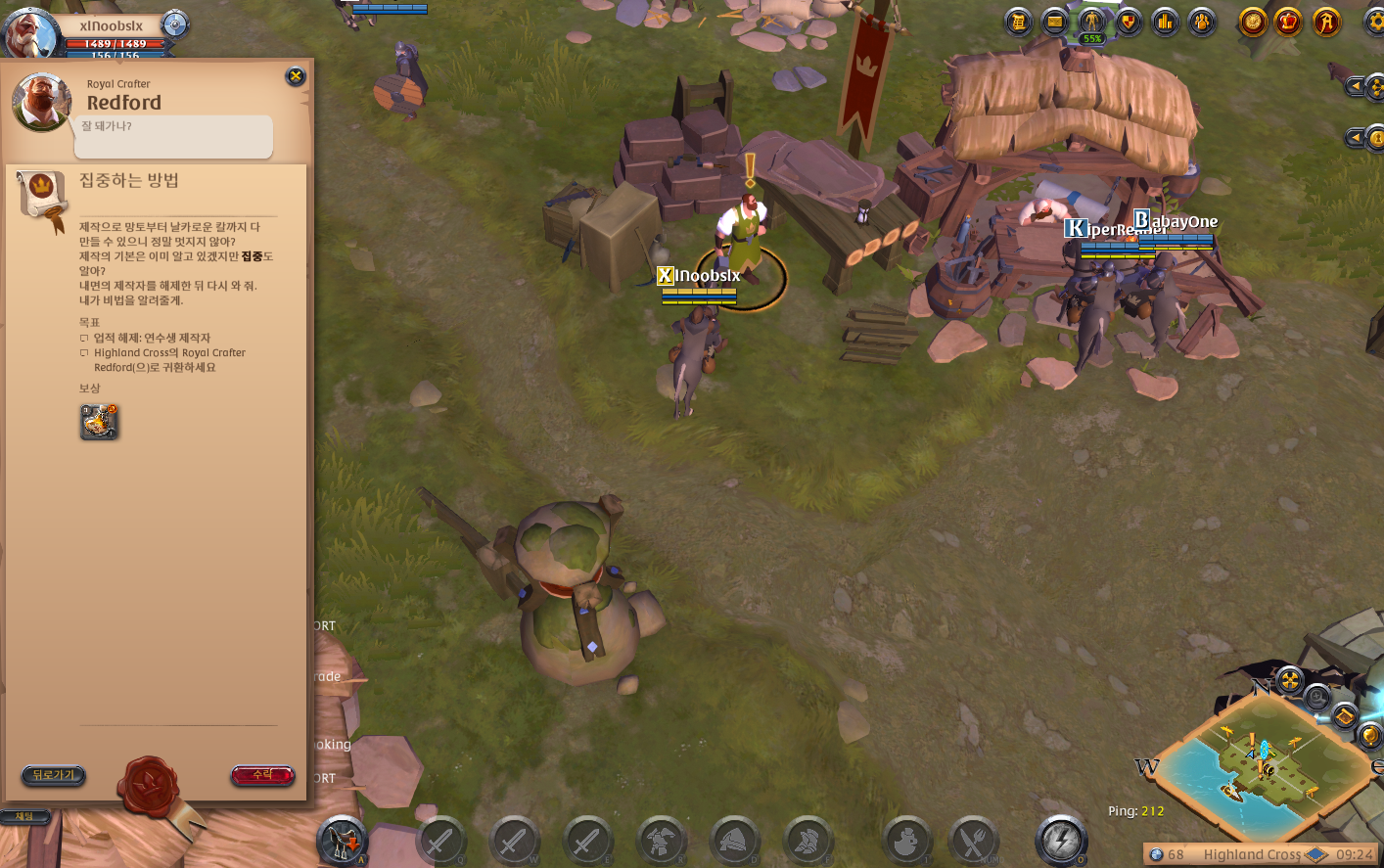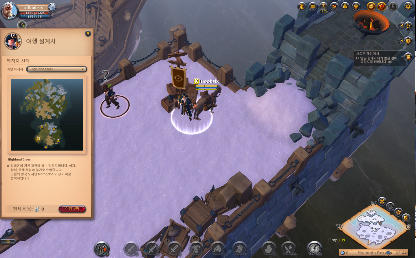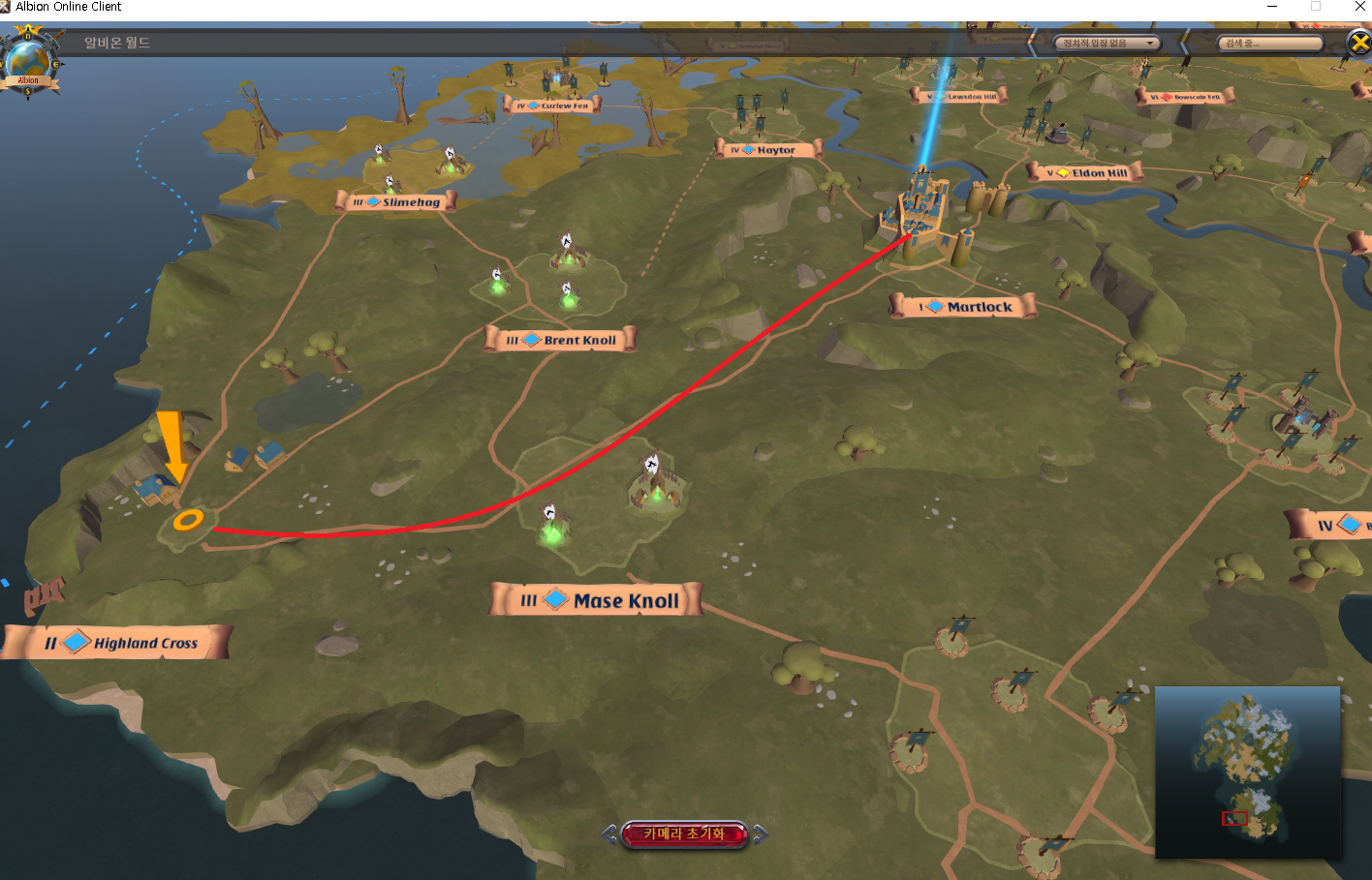 여기서 마을을 선택 할수있으며 Highland Cross가 무난하다. 그나마 한국유저가 Martlock에 많으므로 초보자에게 추천한다.