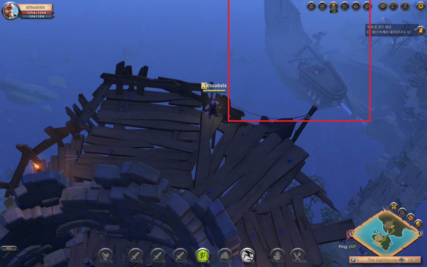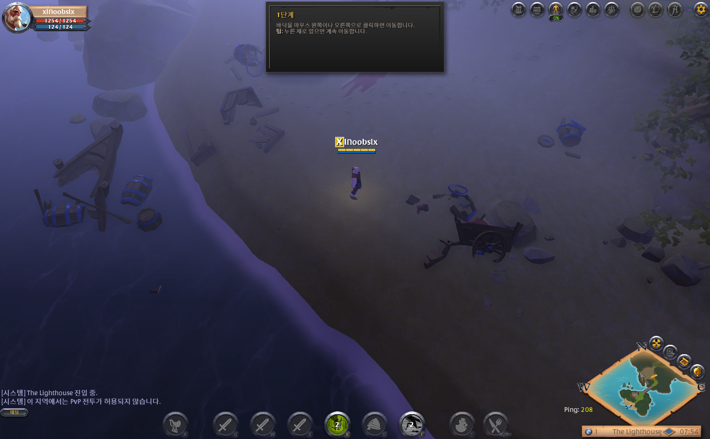 튜토리얼의 목표는 바로 저 배를 타는것이다. 초보섬에서 탈출할수있는 유일한 방법이다.