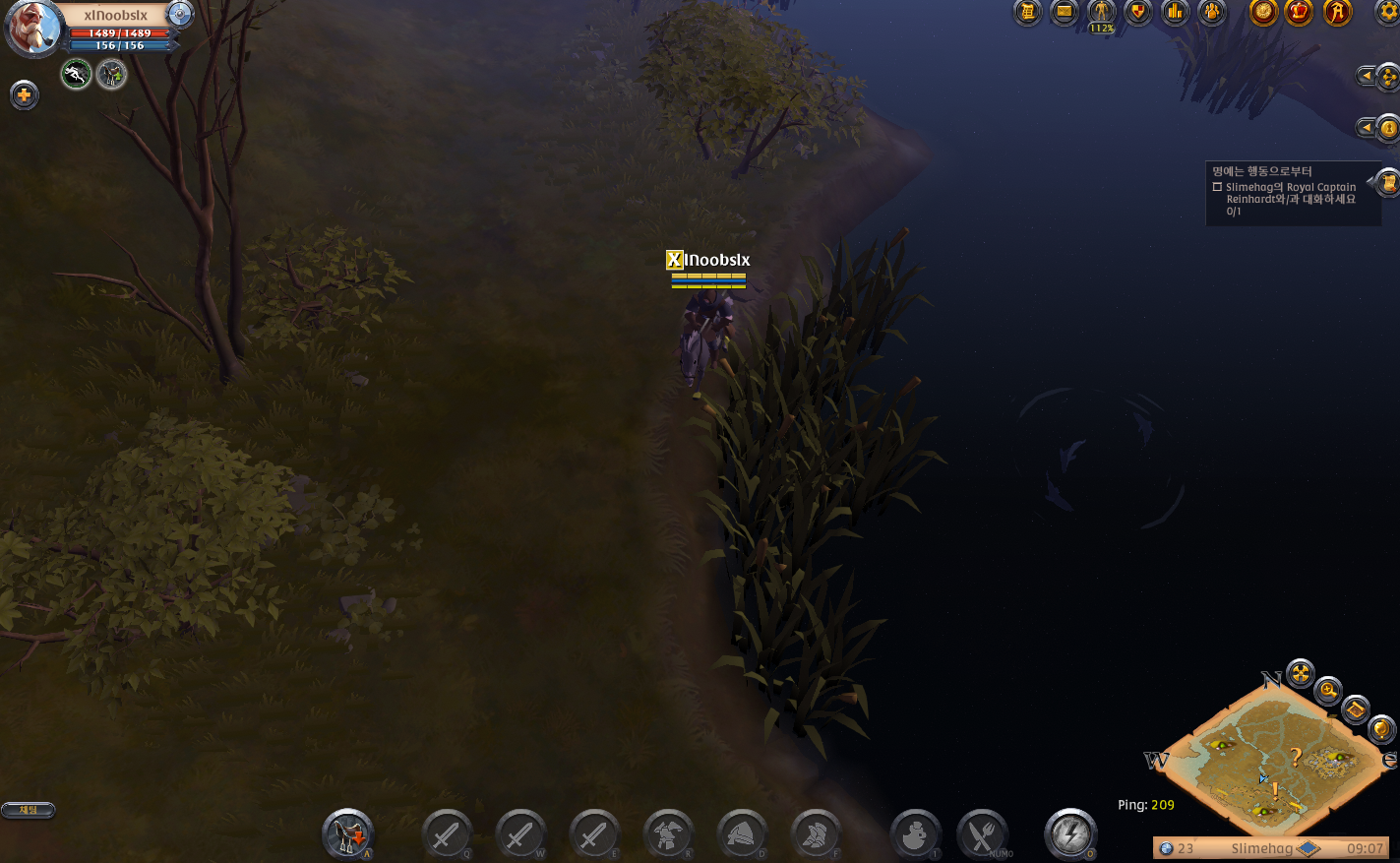 silmhag로 이동하자 m을 눌러 지역을 파악하면된다. 물은표 지역으로 가면 퀘를 완료할수있다.