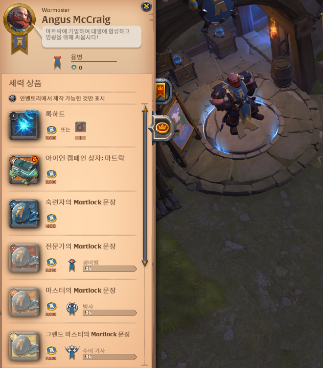 각 마을에 도시 엠블럼 모양의 아이콘이 있는 곳을 찾아보자. 마우스를 가져다 대면 파벌 모집이라는걸 볼수있다. 그곳으로 가보자.
