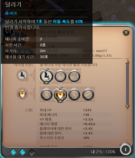 신발은 아무거나 신자 어차피 사냥할 때는 달리기를 주로 쓰기 때문에 아무거나 써도 된다. 저 랩 때는 플레이트가 무난하다. PK용으로도 좋은 병사 부츠를 추천