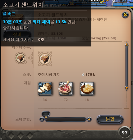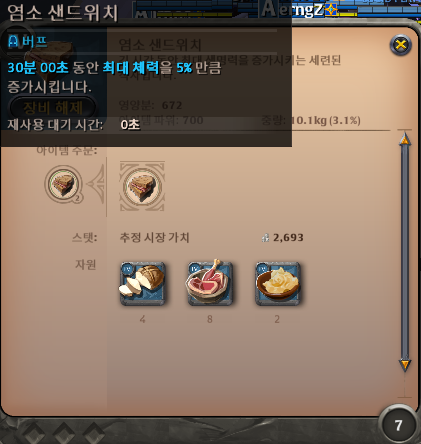 음식은 체력을 올려주는 샌드위치를 구매하자