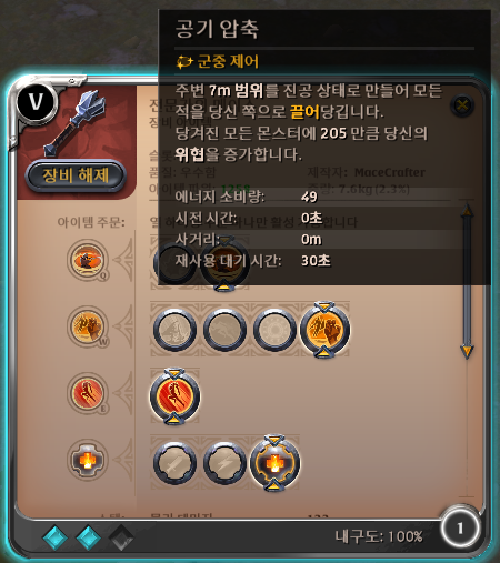 이유는 공기 압축이라는 스킬이 무지 좋다. 공기 압축과 크게 뛰기로 몬스터를 모으고 위협적인 강타로 어그로를 끌어주면 된다.