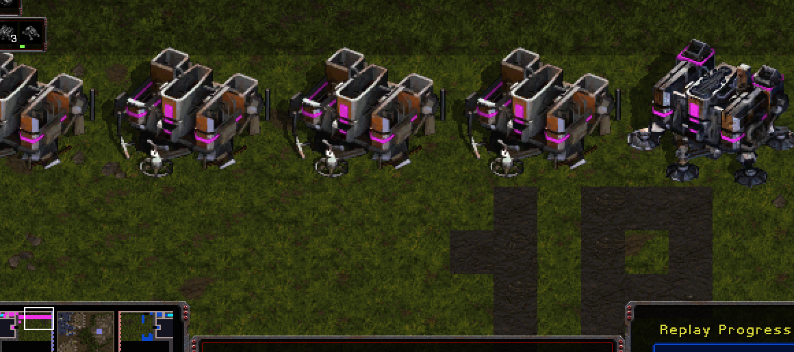 왼쪽에서 시작할때 왼쪽부터 오른쪽까지 배럭을 지어주면 된다. 오른쪽은 꼭 건물을 완성해야 하며 왼쪽꺼는 짓다 취소하면서 오른쪽으로 진행하면된다.